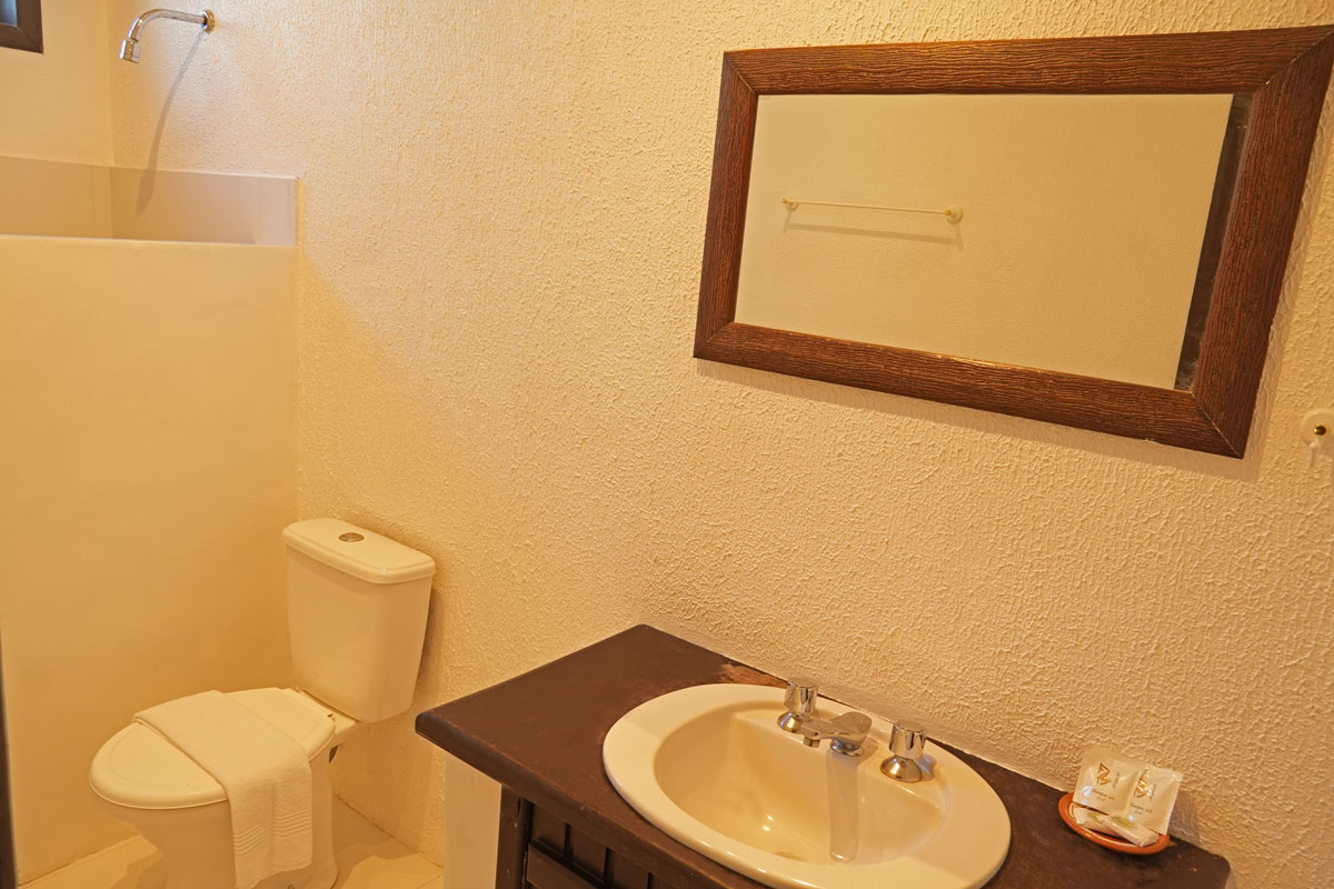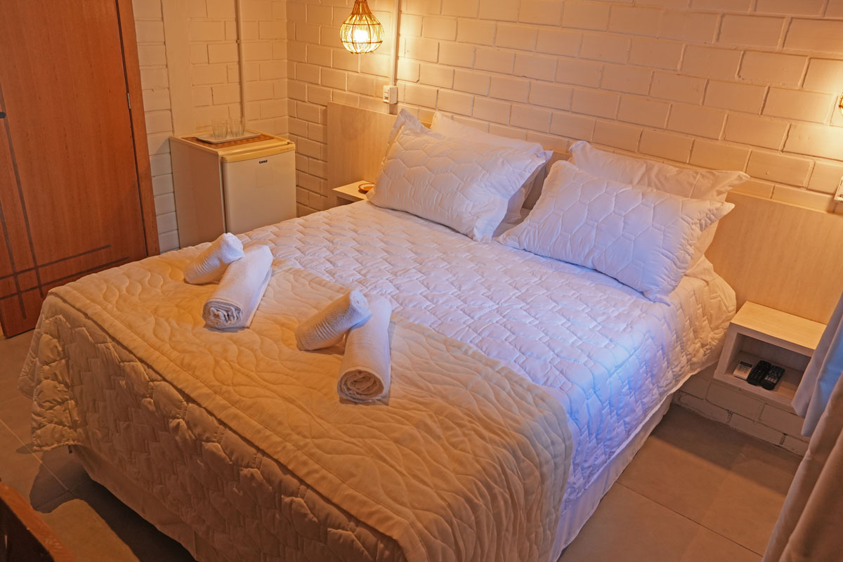 Tomada perto da cama, Ar condicionado Split, TV LCD 32, Frigobar, Ducha a gás, Amenidades de banho, Toalhas, Café da manhã incluído na diária e Serviço de camareira.